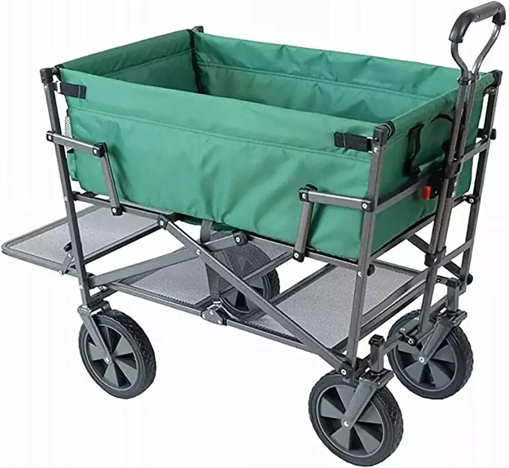 - UTILITY WAGON: Our Double Decker Wagon is a 2-tiered wagon that features a longer lower shelf under the basket for items that cannot fit inside the wagon such as canopies. tents and chairs.