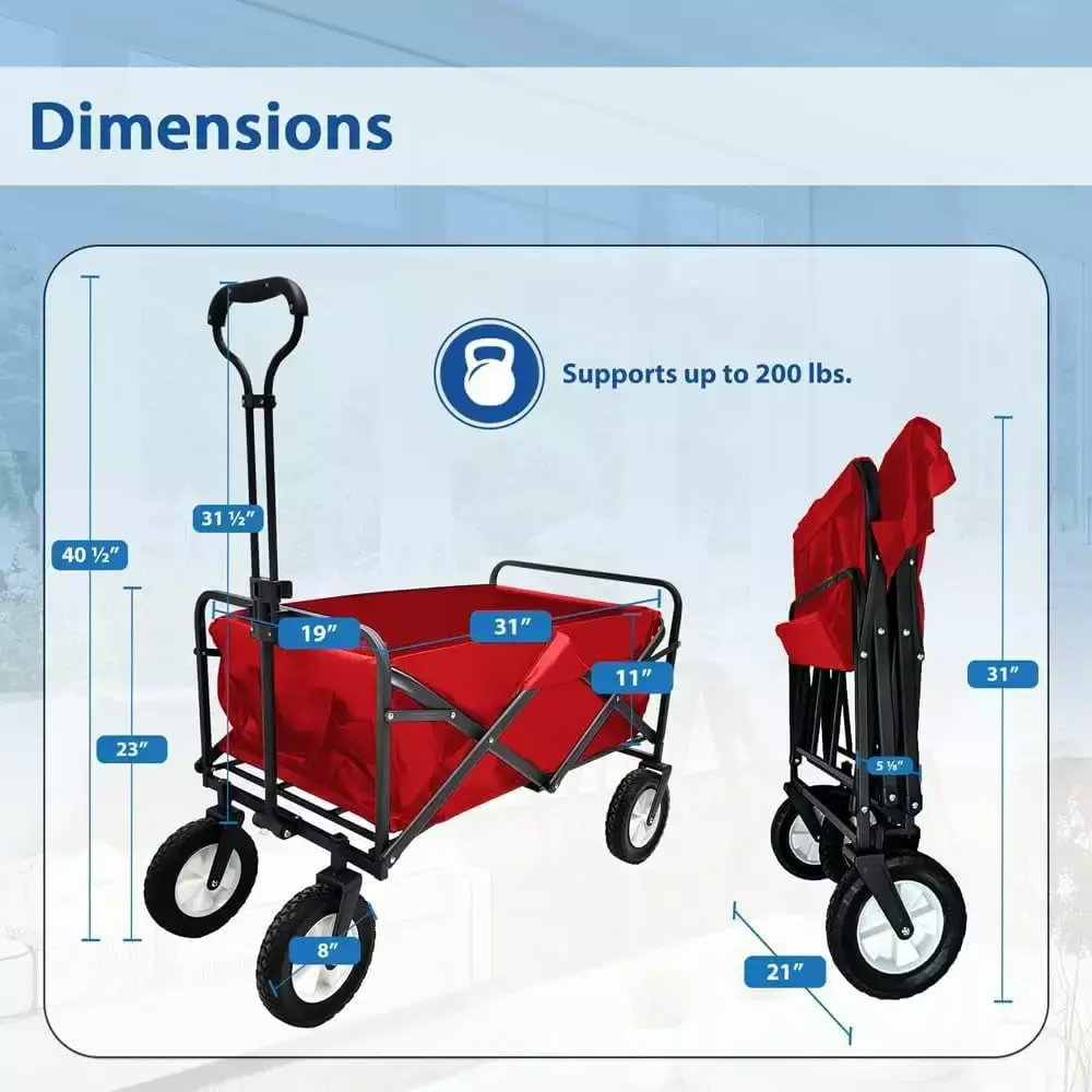 - From VGYUIJN to Wagon in Seconds Within seconds. you are able to open and close this foldable cart to assist with daily tasks in your life. The body of the wagon measures approximately 31 Long x 19 Wide x 11 Tall and can hold weight up to 200 lbs. It is highly versatile to transport almost anything that fits. While collapsed. it measures only 5-1/8 wide. so you can easily place it away in your garage. closet. or trunk of your car for easy access.