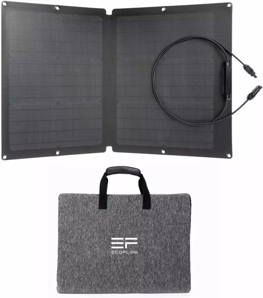 The EcoFlow 60W Solar Panel is designed to produce maximum power at any time of the day when paired with an EcoFlow power station. The solar panel has a high conversion efficiency of 21-22%. and the EcoFlow MPPT power station algorithm delivers improved performance in cold and cloudy environments within the operation range. The EcoFlow 60W Solar Panel is fully waterproof due to a seamless. one-piece design. making it ideal for outdoor activities like camping and hiking. An ETFE film provides extra protection against ultraviolet light. prolonging the lifespan of the product.