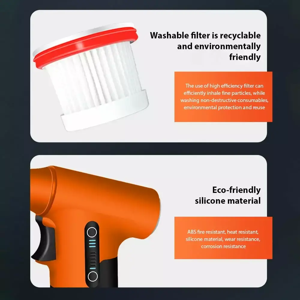 - Long-lasting Battery Life: With a built-in 3000mAh rechargeable lithium battery. this fan offers a long battery life for uninterrupted and efficient cleaning. It also features a washable filter net for efficient suction of fine particles. making it an environmentally friendly choice for your cleaning needs.