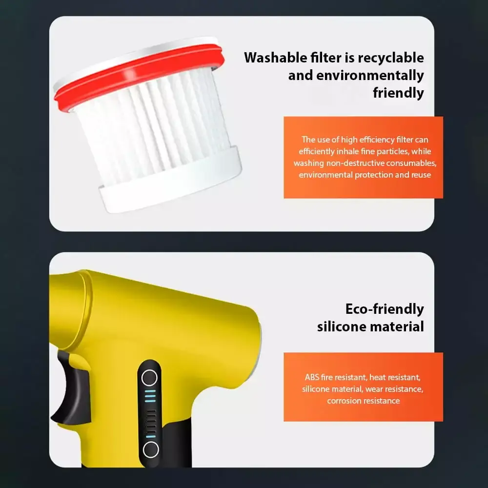 - Long-lasting Battery Life: With a built-in 3000mAh rechargeable lithium battery. this fan offers a long battery life for uninterrupted and efficient cleaning. It also features a washable filter net for efficient suction of fine particles. making it an environmentally friendly choice for your cleaning needs.