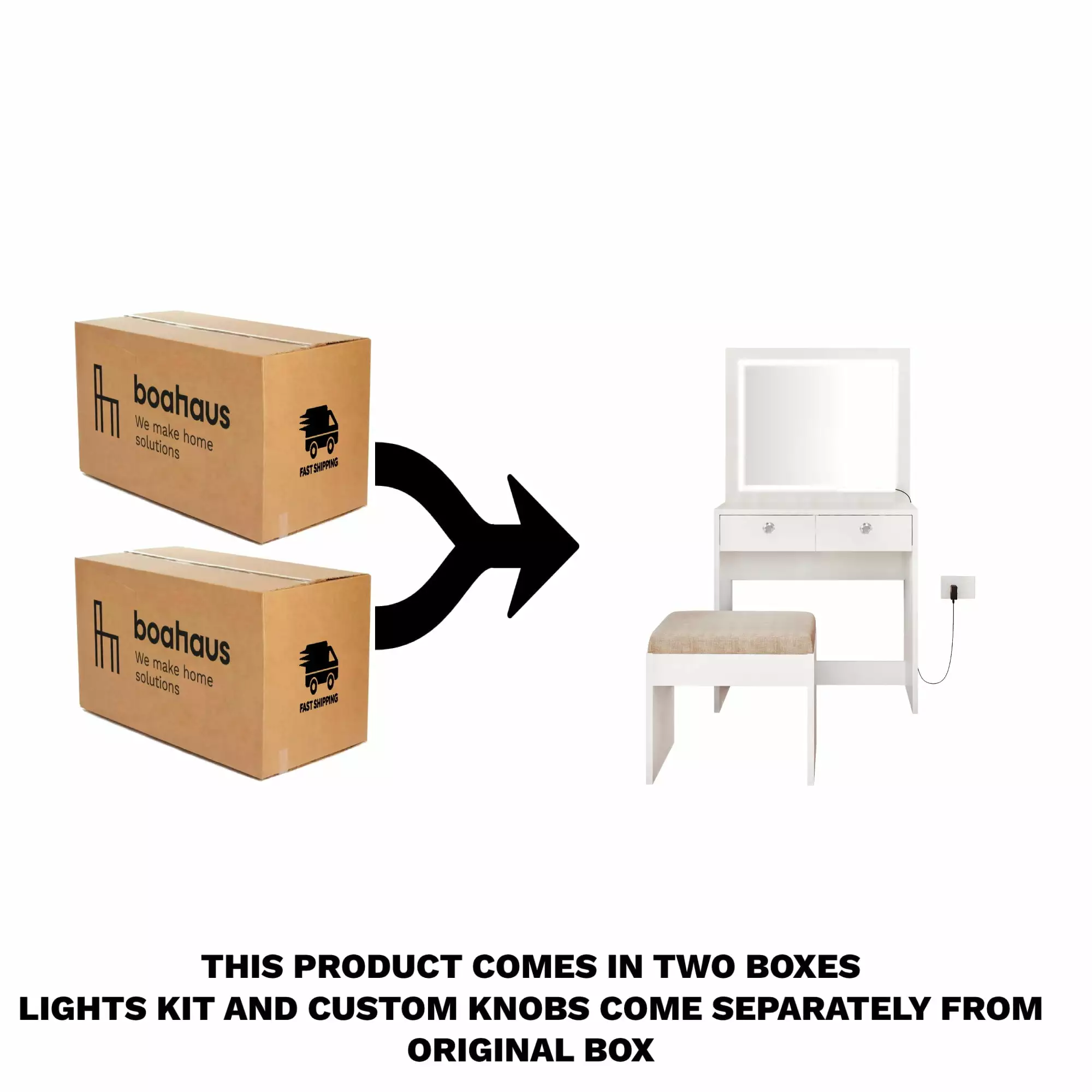 - Stool: The vanity includes a matching stool designed with a soft cushion for comfort and exceptional stability.