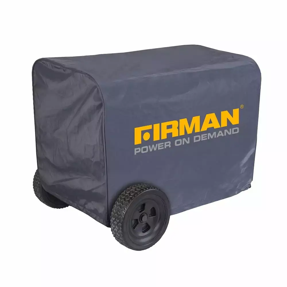 Help to extend the life of your equipment with the FIRMAN Generator Cover. It’s made from strong materials to protect from the roughest of conditions. This waterproof generator cover features a stylish design with the company logo on the side. Use it to guard against rain. snow. UV rays. dust storms. damaging scratches and other elements of life outside. This outdoor generator cover is designed to fit over your 5.700/8.000 watt generator. Additionally. it comes with a very strong pull cord to keep it fitting snug so the wind doesn’t blow it off. It’s easy to install and made to last.