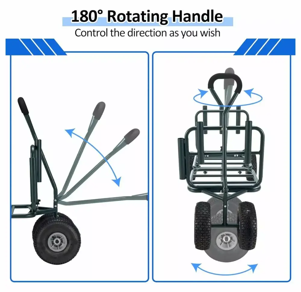 - All- Tires: Four large diameter pneumatic tires combined with unique anti-skid pattern allow for easy cargo transport over a variety of including sand. grass and even rugged . A cargo net is included to create more storage space and prevent items from falling out.