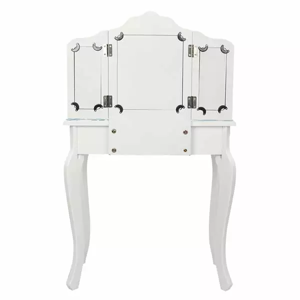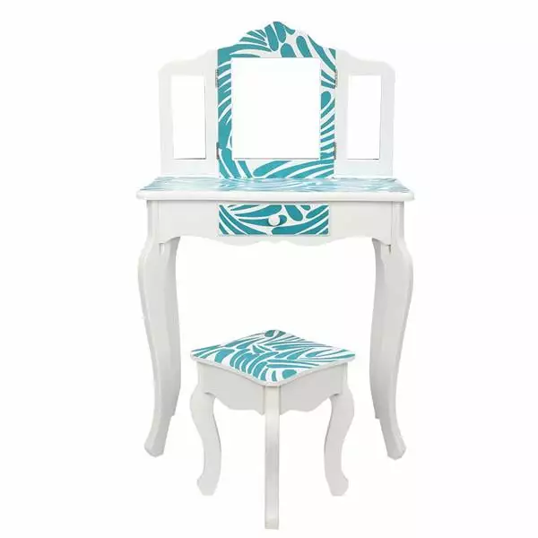 Introductions:This is a children’s dresser with curved feet and three-fold mirrors. This dresser is made of high quality MDF board. its elegant round bronzed handle accentuates the super quality of the dressing table.Blue zebra and white make this dresser sweet and lovely. The dresser top and stool surface all adopt arc design for avoid children knock against to cause unnecessary injury. The three-fold mirror can be detachable and used as a children’s desk.Features:1. Hard MDF board2. Bronzed metal handle3. Three-fold mirror4. The dresser top and stool surface all adopt arc design5. Sturdy stoolSpecifications:1. Colour: Blue Zebra and White2. Dresser Dimensions: (23.63 x 11.03 x 38.59)" / (60 x 28 x 98)cm(L x W x H)3. Stool Dimensions(9.85 x 9.85 x 11.82)" / (25 x 25 x 30)cm(L x W x H)Package Includes:1 x Dresser1 x Stool1 x Accessory Kits1 x ManualFithood FCH Three-Fold Mirror Single-Drawing Curved Foot Children Dressing Table Blue Zebra