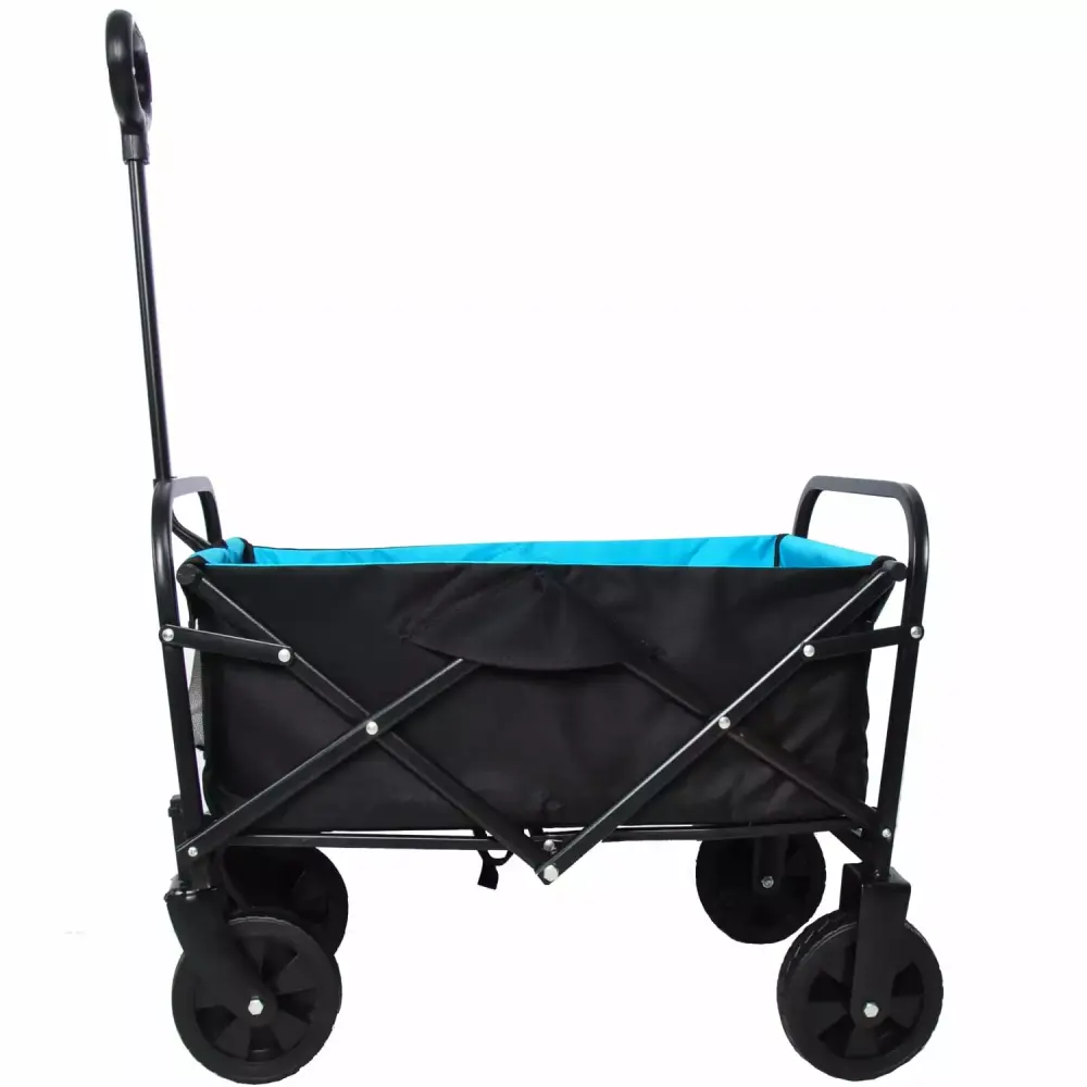 - HIGH QUALITY The utility wagon cart is made of strong steel and iron frame. fixed handle is firm and practical. rubber wheel is suitable for hard road and beach. and waterproof 600D Oxford cloth is easy to clean and has long service life.