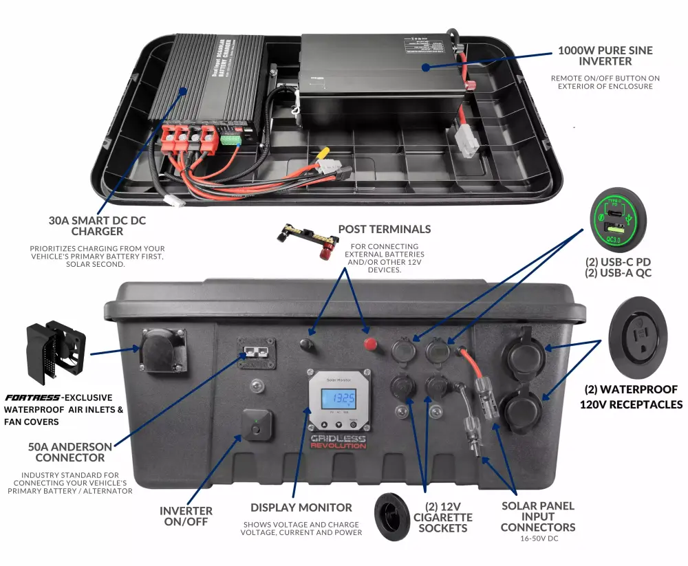 GR Fortress Overlanding Solar Generator Battery Box for 12V AGM. SLA. LiFePO4 or Lithium Batteries