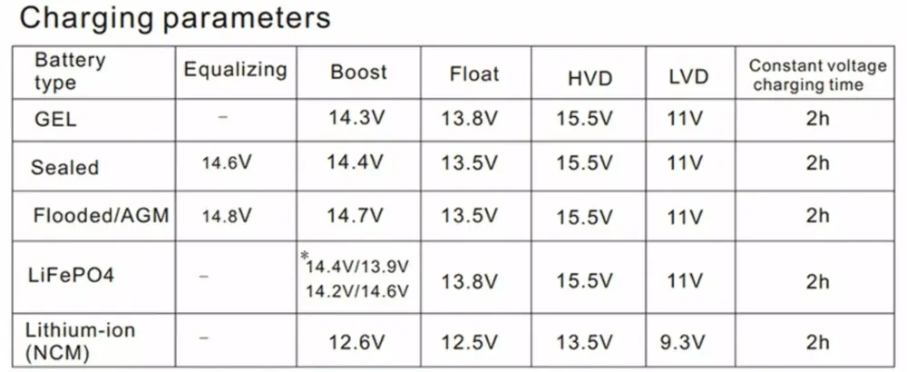 - Compatible with a wide range of batteries: LiFePO4. 3S (12.6V) Lithium. SLA. lead acid. and AGM