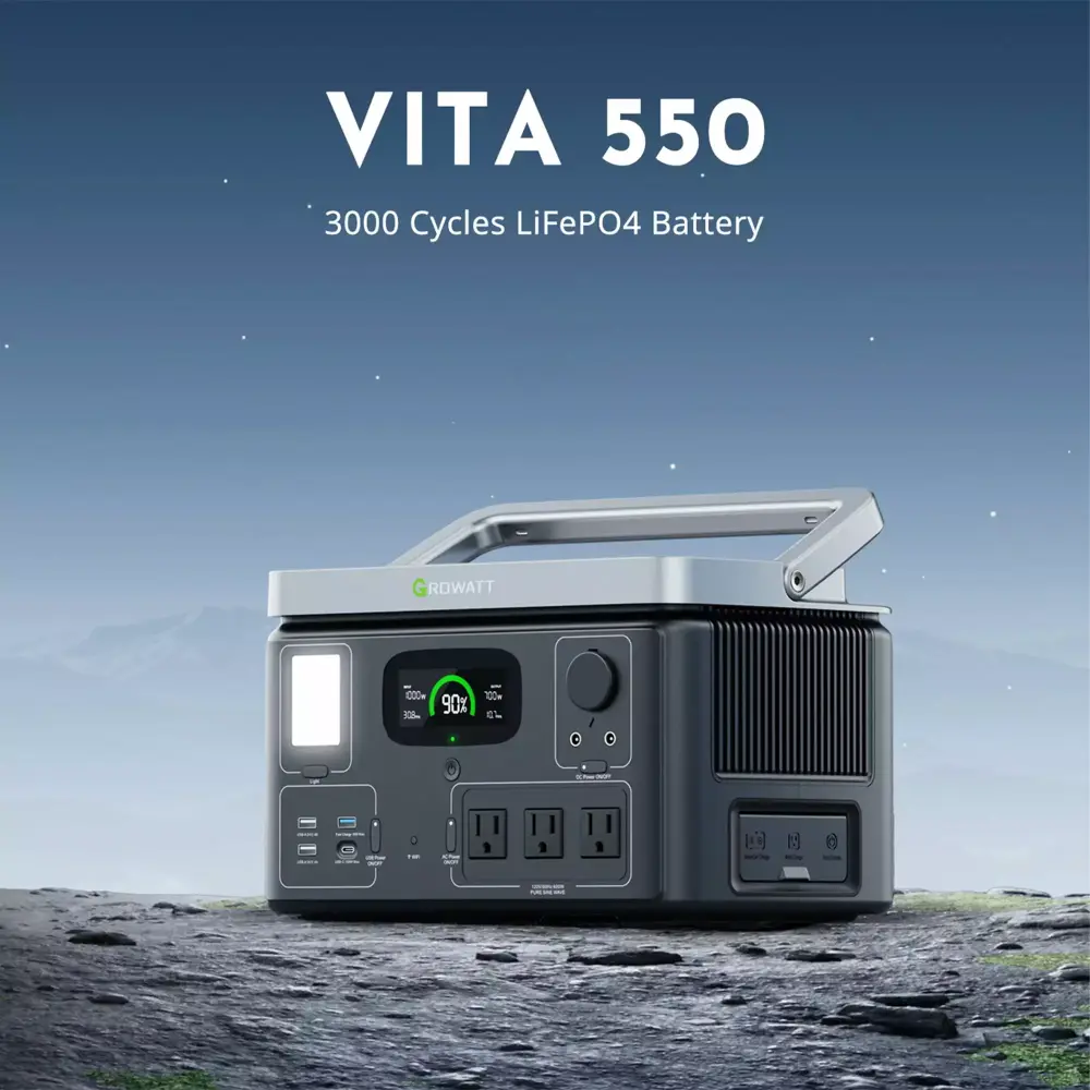 | Features | 538Wh Capacity & 11 Outlets. Recharge to 100% in 1.6 hour. Multiple charging methods. Safe & Reliable LiFePO4 Battery. ONE-SECOND Inductive Wireless Charging. Ultra Portability. Multi Protection with BMS. Smart APP Remote Control. With the Watt feature. VITA 550 could enable high-powered devices below 1050W to operate |