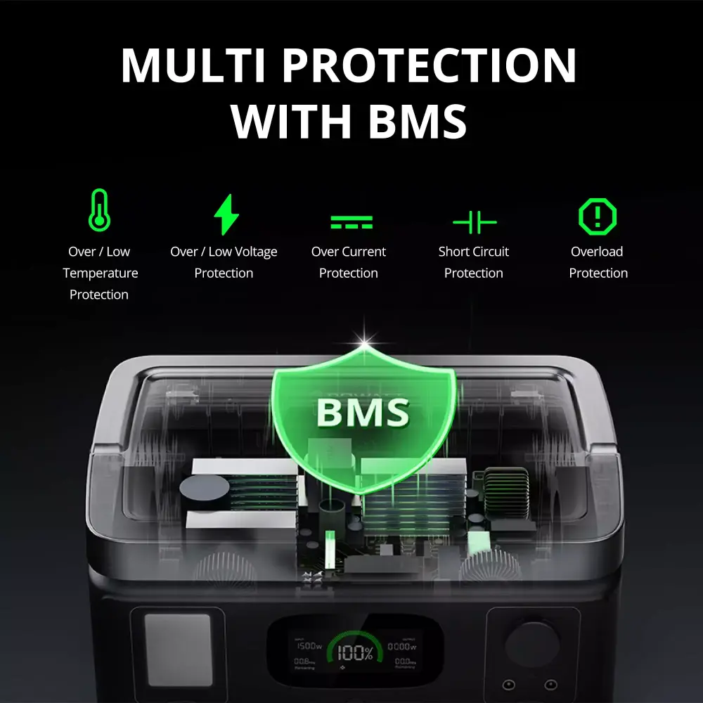 With the Watt feature. VITA 550 could enable high-powered devices below 1050W to operate. which breaks through the limits of what a portable power station can do. - Multi-Protection with BMS & EPS