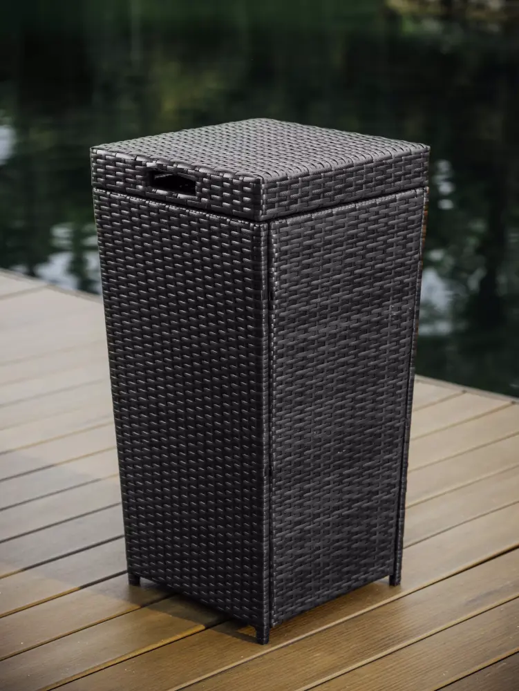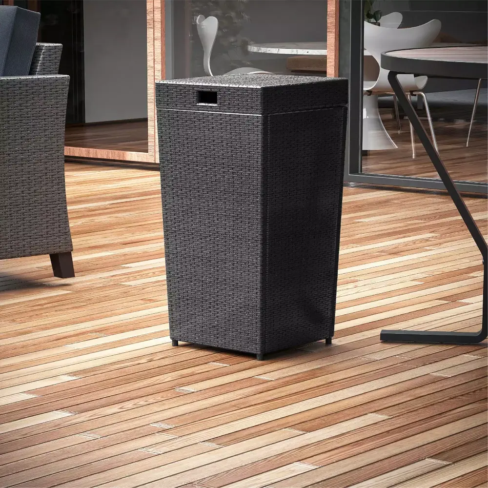 - This outdoor trash can for patio is the perfect addition to complement our patio furniture sets. Hearth & Harbor’s outdoor garbage can looks beautiful and reduces cleanup time. giving you more time to enjoy the great outdoors