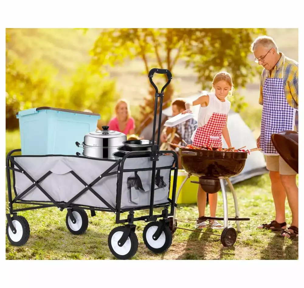 - Wide Range Of Applications This folding wagon suitable for carrying all the heavy items for you. such as groceries. gardening tools. folding chairs and sports equipment in shopping. travel. vacation.beach and garden.