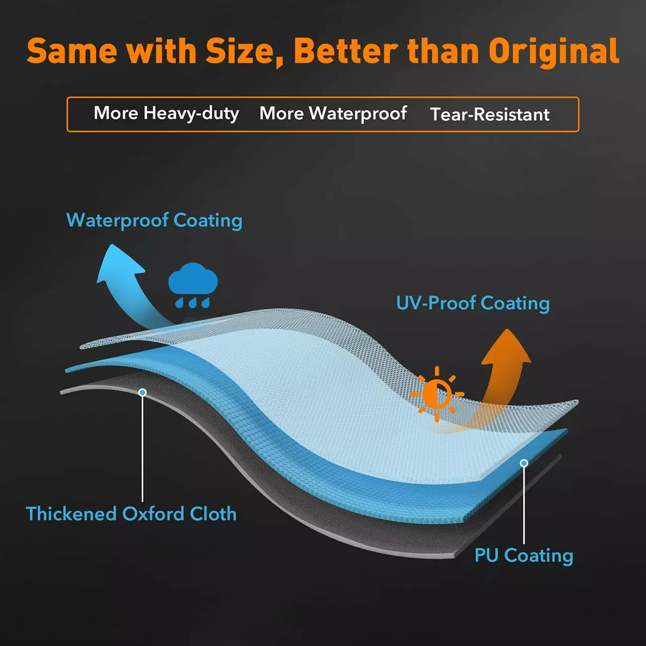 - Made of Rugged. Water-Resistant. Heavy Duty Polyester Material- 600D Oxford fabric with PVC lining. protect against outdoor elements from water. rain. snow and dirt