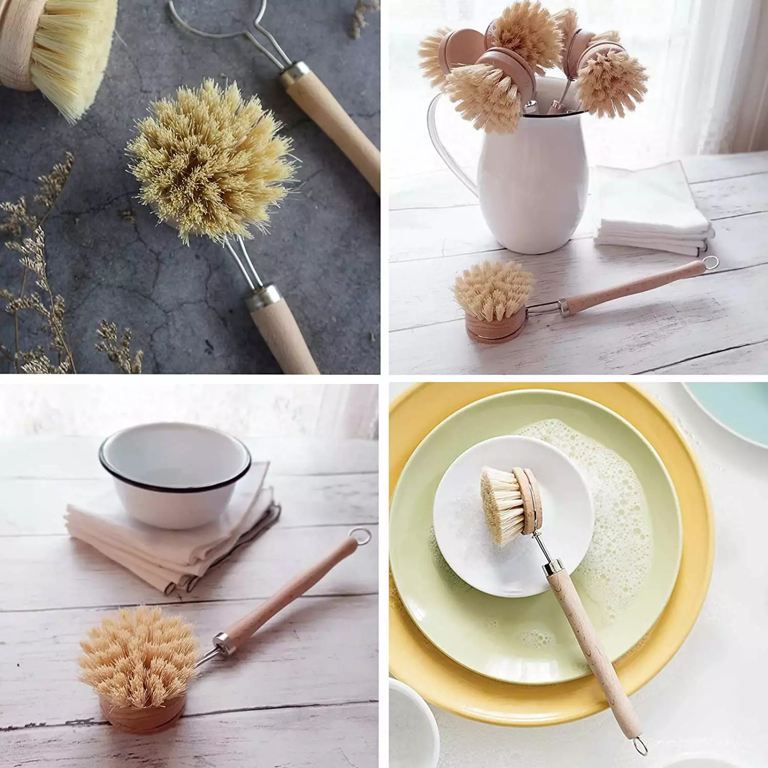 - ^[MUTLIPLE OCCASIONS]-Wooden brush are plant-based and 100% biodegradable.Suitable for cleaning all food cookware and tableware.Such as pots. pans. bowls and dishes in kitchen. also good for cleaning the mildew. grease or hardened dirt of bathroom. table. wall. floor. window etc. good helper in your daily life.