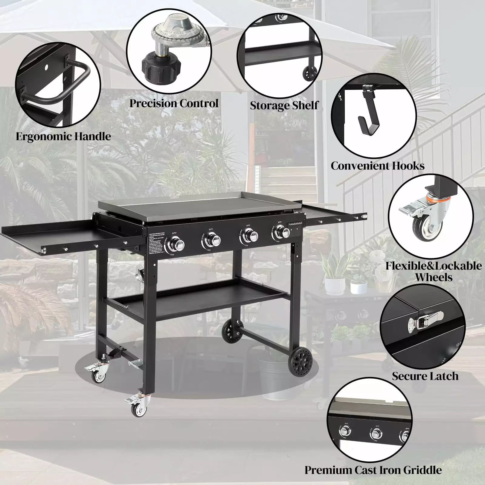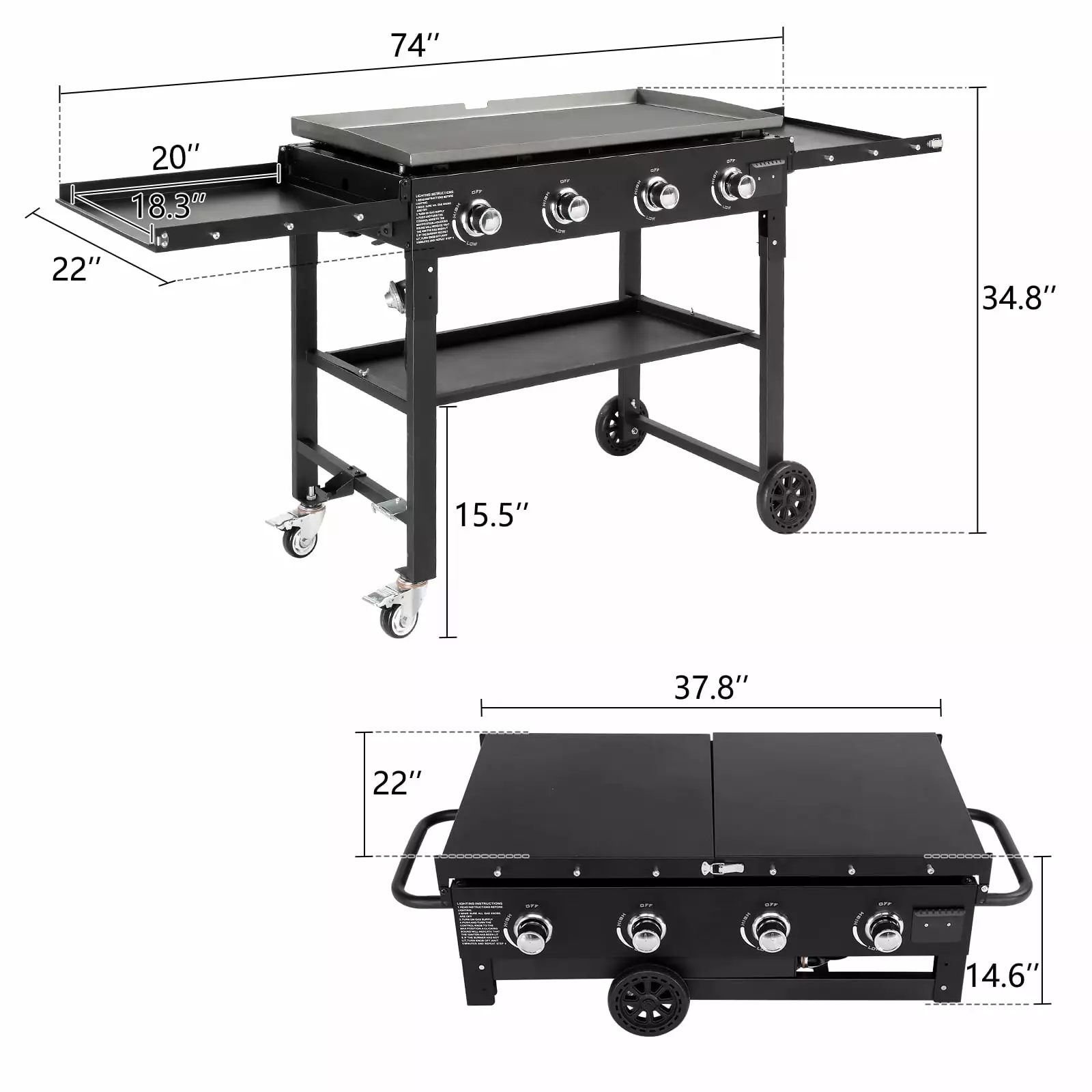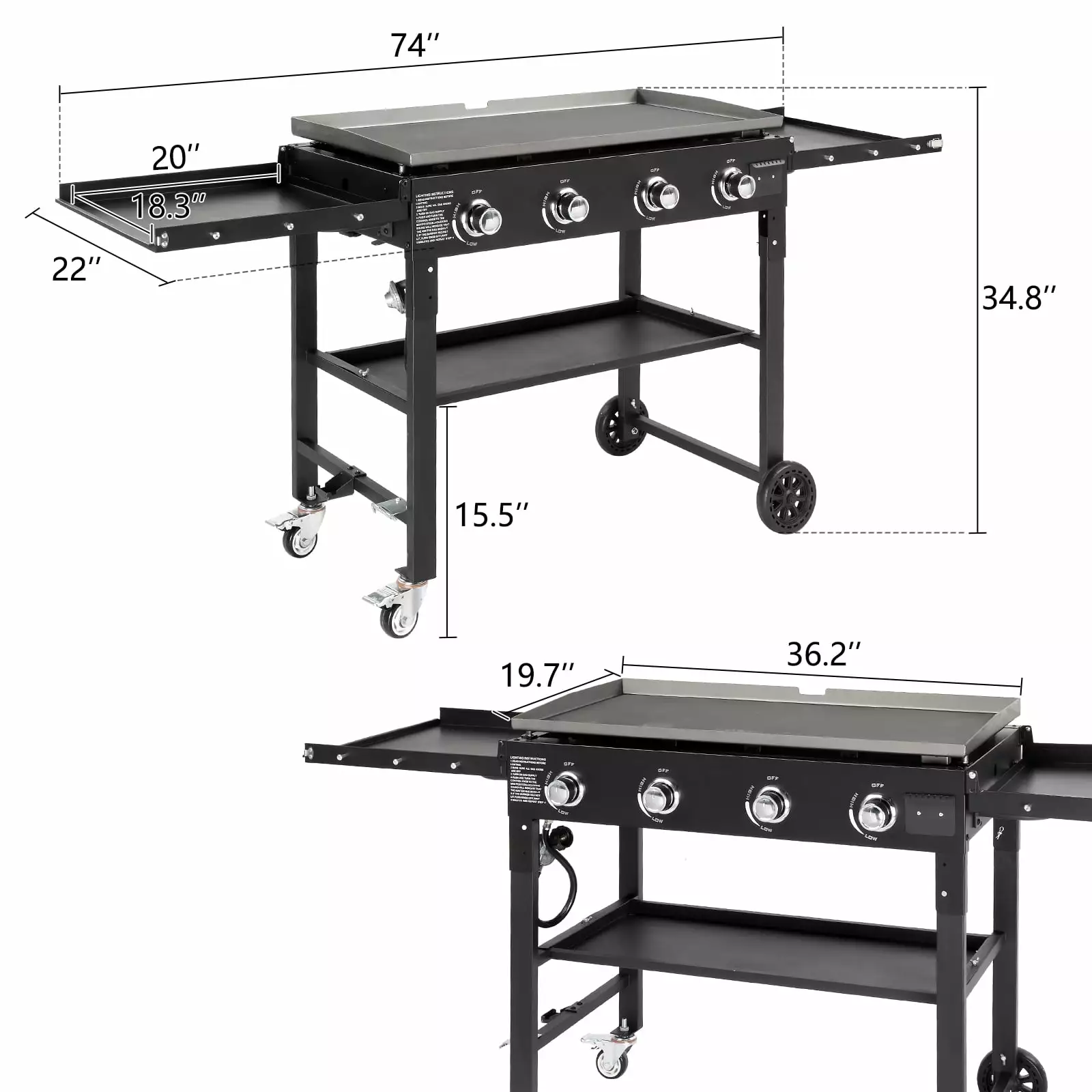 Package Includes: 1 x 4-Burner Flat Top Gas Griddle Cooking Station
