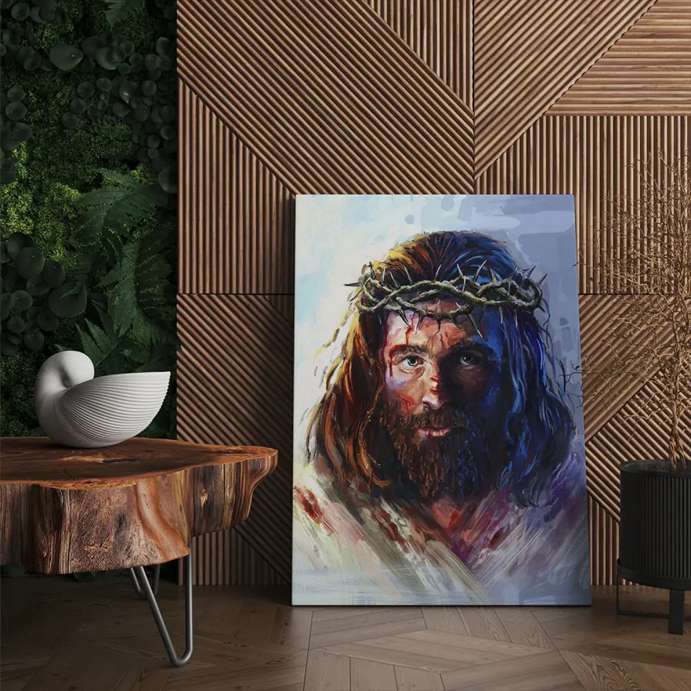 Jesus Christ Painting Crown of Thorns Portrait Cotton Pine Wood