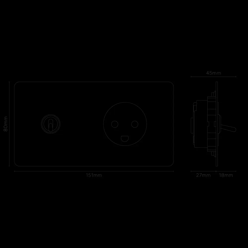 This double mixed switch and socket combines a two-way toggle switch and Danish socket on one plate.