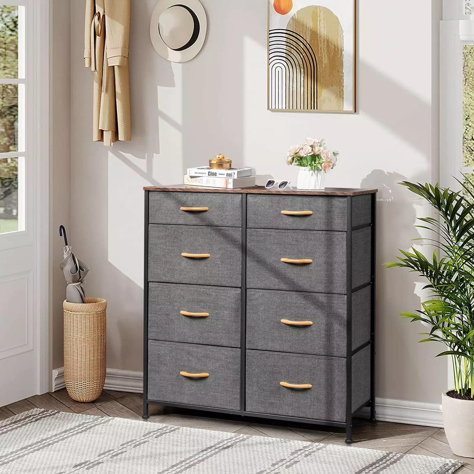 Give your household essentials a cozy landing spot with the 8-Drawer Dresser. This beautiful dresser chest features a tabletop surface and pull-out drawers to tuck away household clutter. The thoughtful design is great for small living spaces and works equally well near the bed or sofa. Organization enthusiasts will enjoy filling each drawer with clothing. linens. and knick-knicks from around the home. The lightweight frame makes this unit easy to transport and when not in use. simply fold the fabric drawers flat for storage. Use alone as a single unit or pair with any drawer configuration from the Furniture Collection.
