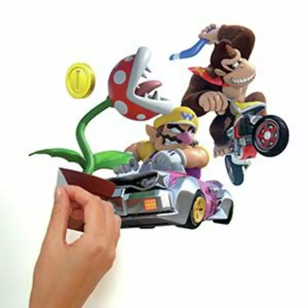 - Seven wall decals featuring Mario. Luigi. Princess Peach. Yoshi. Wario. Bowser Lakitu and Donkey Kong in race mode