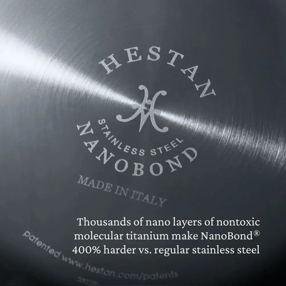 For groundbreaking innovations in cookware, equip the kitchen with the ultimate work horse- the Hestan NanoBond Molecular Titanium Stainless Steel Dutch Oven. This 5-quart Dutch oven is constructed to heat quickly and thoroughly for advanced browning, simmering, braising, and roasting. Hestan’s innovative cookware technology, Molecular Titanium, bonds thousands of titanium nano-layers to the 18/10 stainless steel construction, creating a brilliantly resilient cooking surface that is 4X harder than typical stainless steel, making the versatile pot resistant to scratching, staining, and salt pitting.