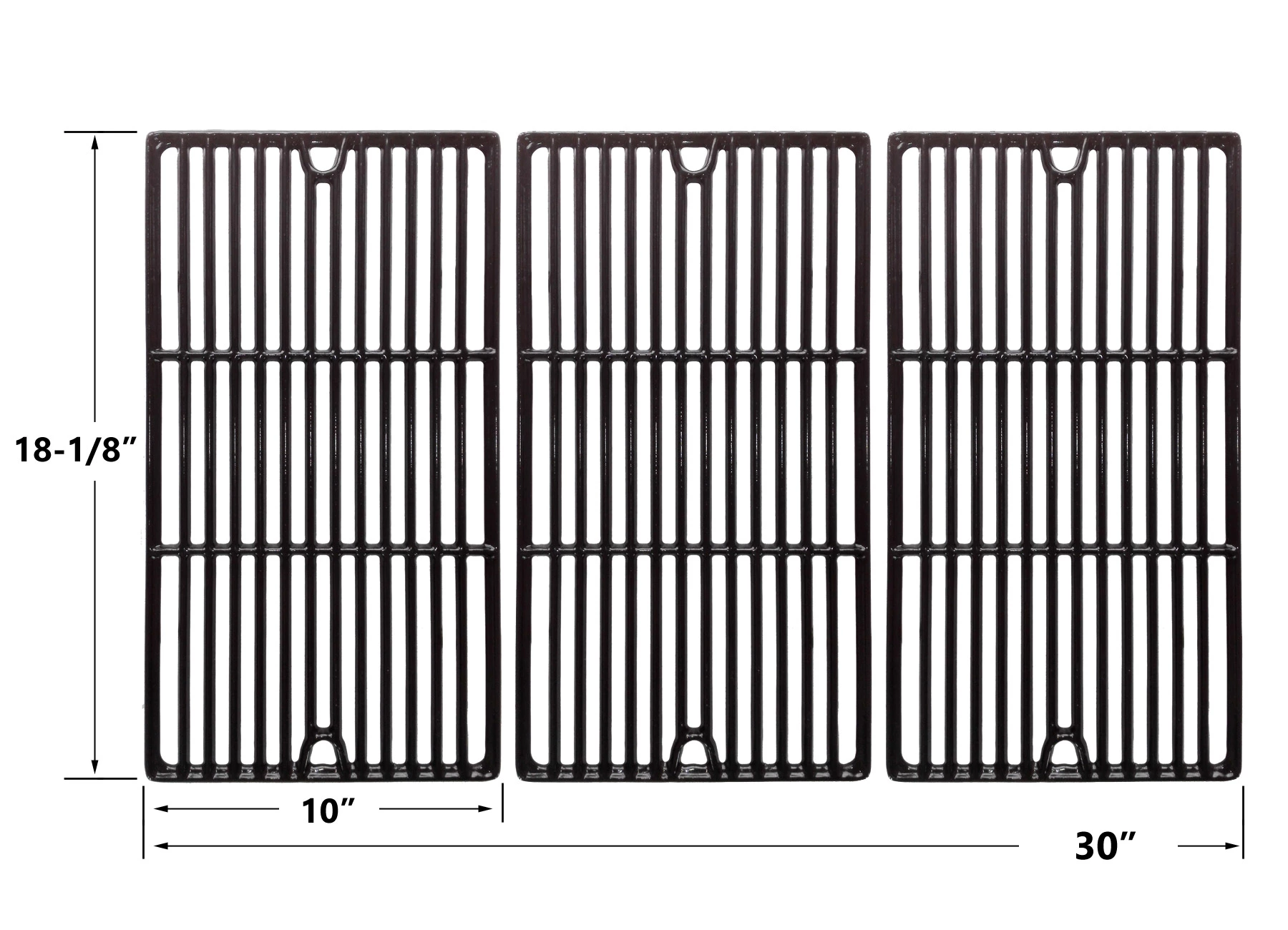 - Porcelain Cast Iron Cooking Grate (Set of 3): 18-1/8 x 10 Each x 18-1/8 x 30 Total