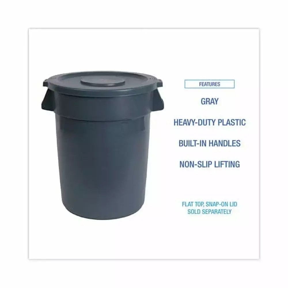 A heavy-duty. round waste receptacle that’s extremely sturdy for a variety of use applications. Made from all plastic with professional-grade construction to ensure long-lasting performance. Extremely durable. will not rust. chip. or peel. even when used outdoors. The built-in handles allow for easy. non-slip lifting. and jam-proof nesting. Compatible with an optional. Boardwalk flat-top. snap-on lid in the same size. which is sold separately. Waste Receptacle Type: Outdoor All-Purpose Waste Bin; Material(s): Plastic; Application: Outdoor All-Purpose Waste Disposal; Capacity (Volume): 44 gal.