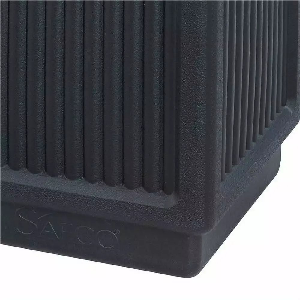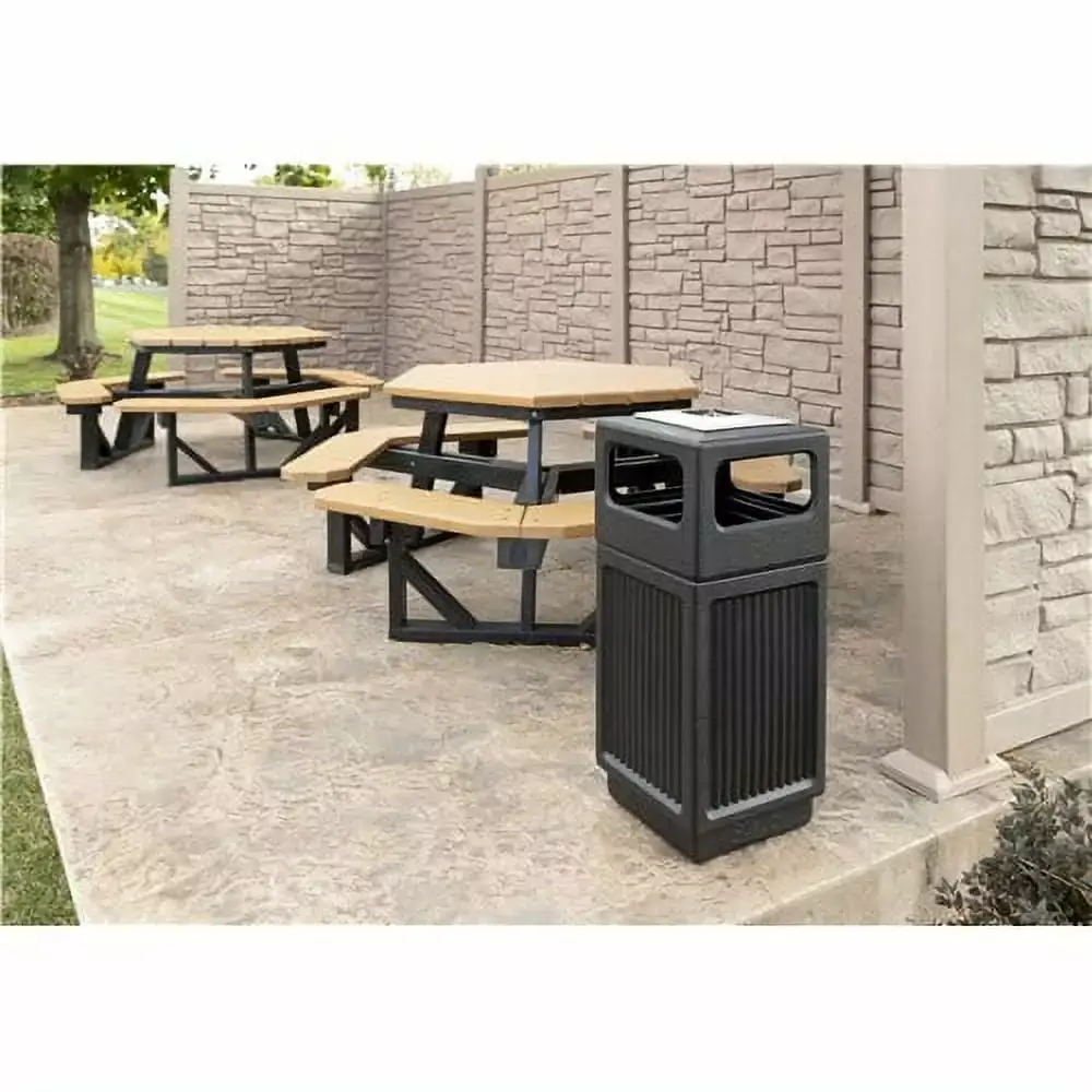Striking. affordable fluted panel design will add beauty and serviceability to your First Impression areas. Molded from high-density polyethylene with built-in UV inhibitors. Telescoping base hides bag. Attractive design with recessed bottom. 38-gallon capacity; uses standard 32 x 44 trash bags. Easily adaptable for anchoring or weighting devices. Top opening style features an 9.5 opening. Suitable for use in Industrial settings.