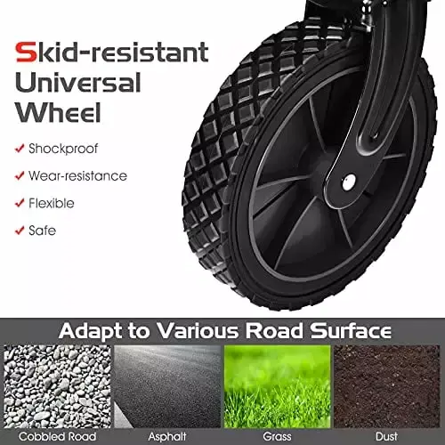 - Flexible Handle & 7 Widened Wheels Our collapsible wagon features with 7 Inches widened all-terrain wheels. which can roll smoothly on different roads. like gravel road. cement road. grass. etc. Beyond this. thanks to the height and angle adjustable handle. you can pull the cart more effortlessly.