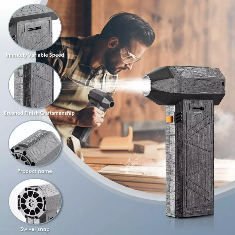 Powerful Airflow Equipped with a high-speed brushless motor. our fan can an incredible speed of 130.000 . allowing it to a maximum airflow speed of 52 m/s. This powerful fan ensures efficient and effective cleaning.