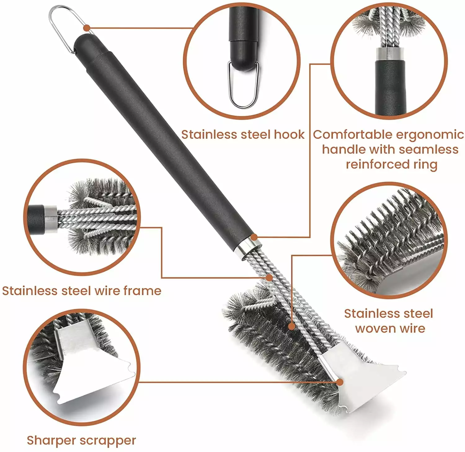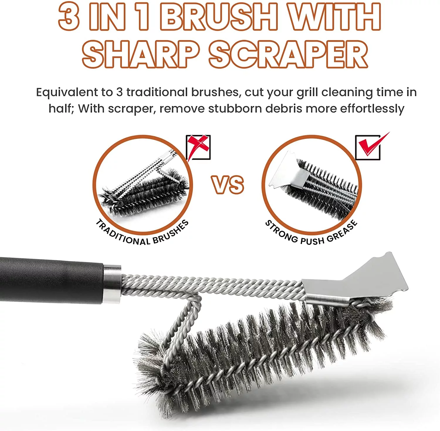 - Upgraded spiral brush design: No tiny wire bristle. a safe alternative to traditional wire brushes. with this safe grill brush and scraper. your food will stay 100% bristle free. It is an indispensable cleaning tool for barbecues