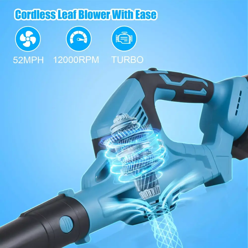 - Powerful Turbo Motor: Introducing the Lithium-Ion Leaf Blower with a remarkable 12000rpm rotation speed. This high-powered device is equipped with a turbo motor. ensuring efficient and effective blowing performance. Say goodbye to stubborn leaves and debris in your garden or industrial areas effortlessly.