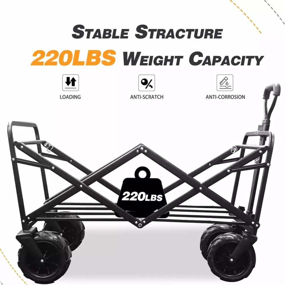- Collapsible Heavy Duty Beach Wagon Cart Outdoor Folding Utility Camping Garden Beach Cart with Universal Wheels Adjustable Handle Shopping (Red)