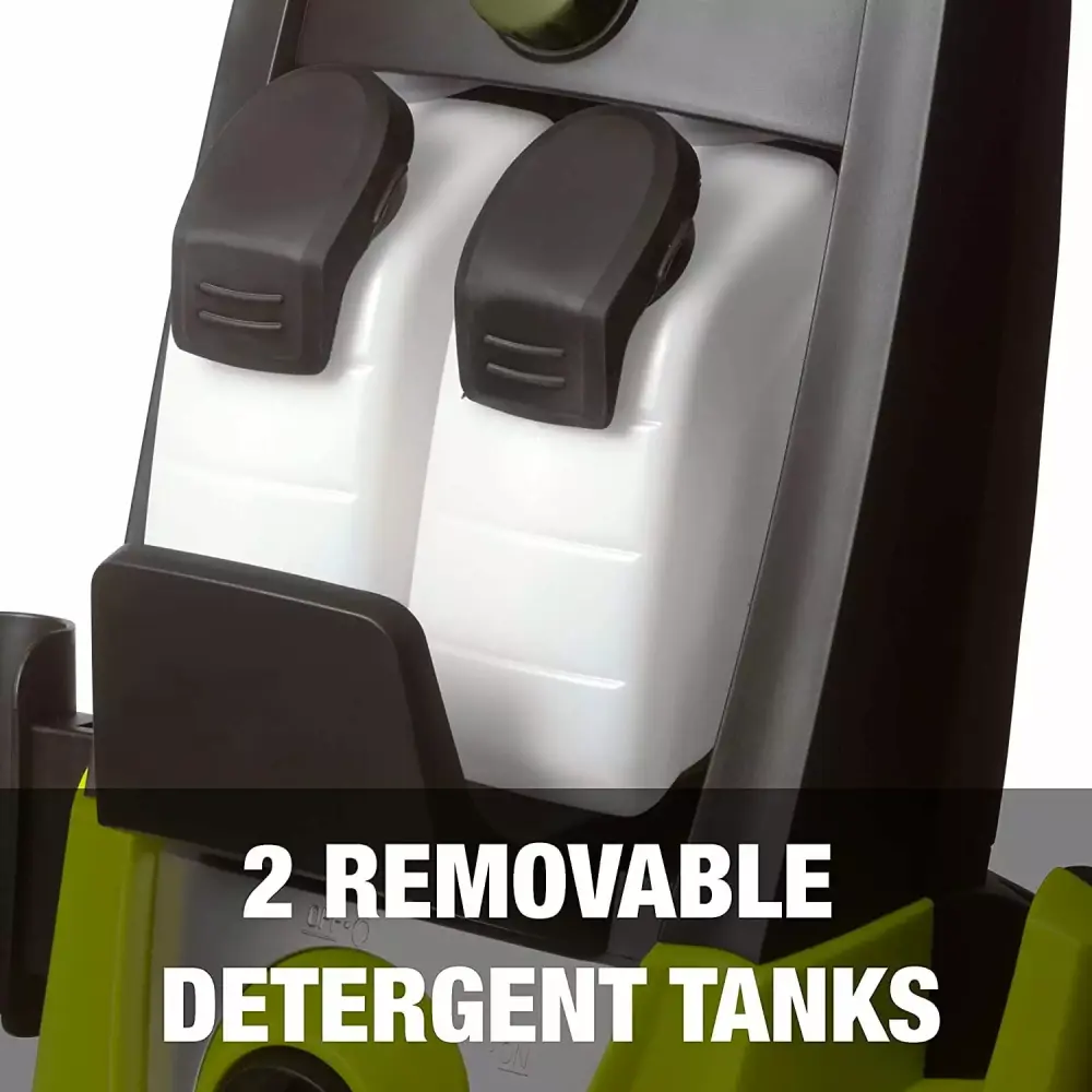 - VERSATILE: Tackle a variety of cleaning tasks: homes. buildings. RV’s. cars. trucks. boats. decks. driveways. patios. lawn equipment. and more. With two 0.9 L onboard detergent tanks. removable tanks carry and store different types of detergent to simultaneously tackle different cleaning projects.