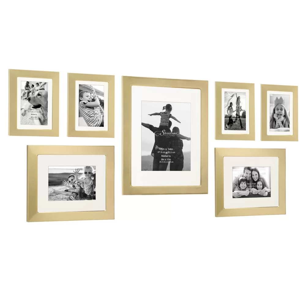 Remember those special moments and enhance your home decor with Stonebriar’s stamped gold picture frame set. These frames are easily loaded with the removable back panel. Frame set comes with 1-11×14 (8×10 with mat), 2-8×10 (5×7 with mats), and 4-5×7 (4×6 with mats) frames. Frames come with wall hanging hardware for wall display. Our frames are made of the highest quality materials. Stonebriar’s frame set is made of stamped gold metal with a matte finish, and your pictures will be kept safe and looking great by a protective glass plate insert. Whether it’s for your living room, kitchen, bedroom, or office, Stonebriar’s decorative metal frame set is the perfect decoration to enhance your home decor. Buy Stonebriar’s decorative metal frame set for your own pictures or give it as a gift to your friends and loved ones.