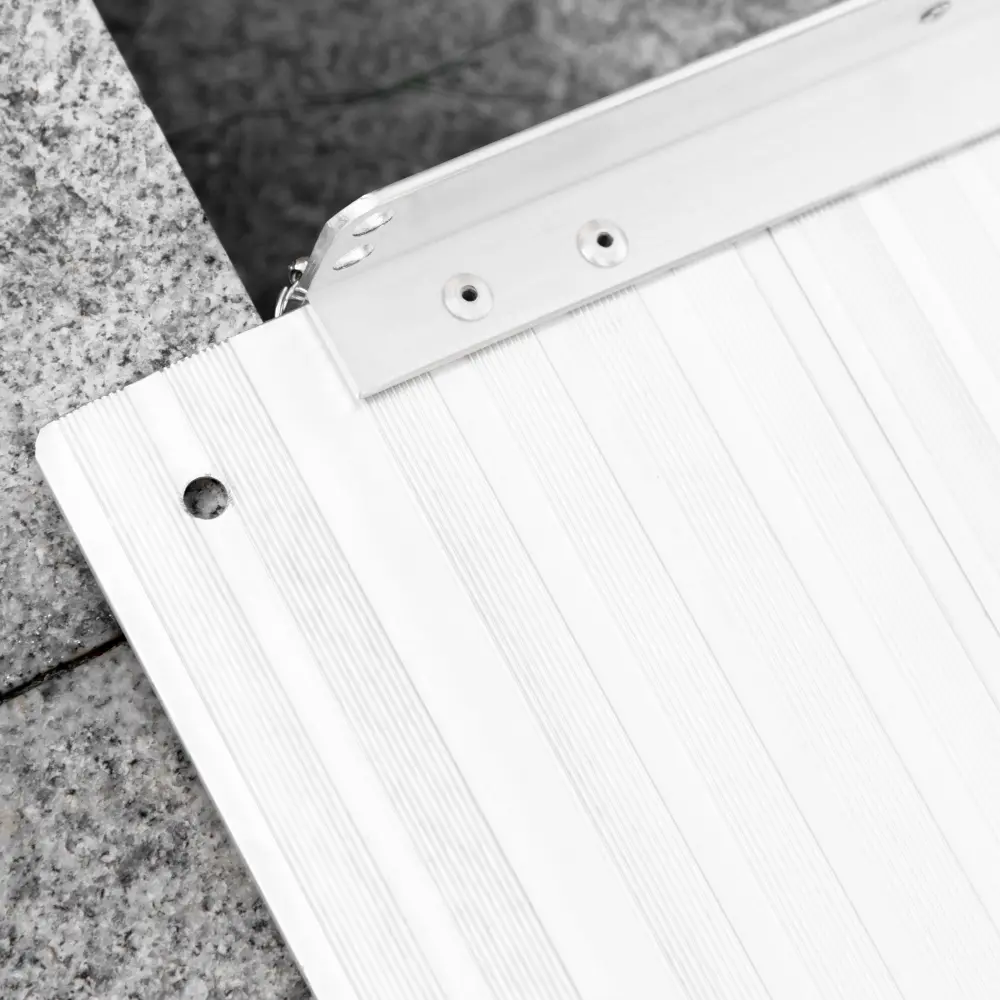 Heavy-Duty: Constructed from strong and durable anti-corrosive aluminum alloy, this 2′ ramp can easily withstand up to 600 lbs., yet can be utilized conveniently to travel with due to its collapsible design.