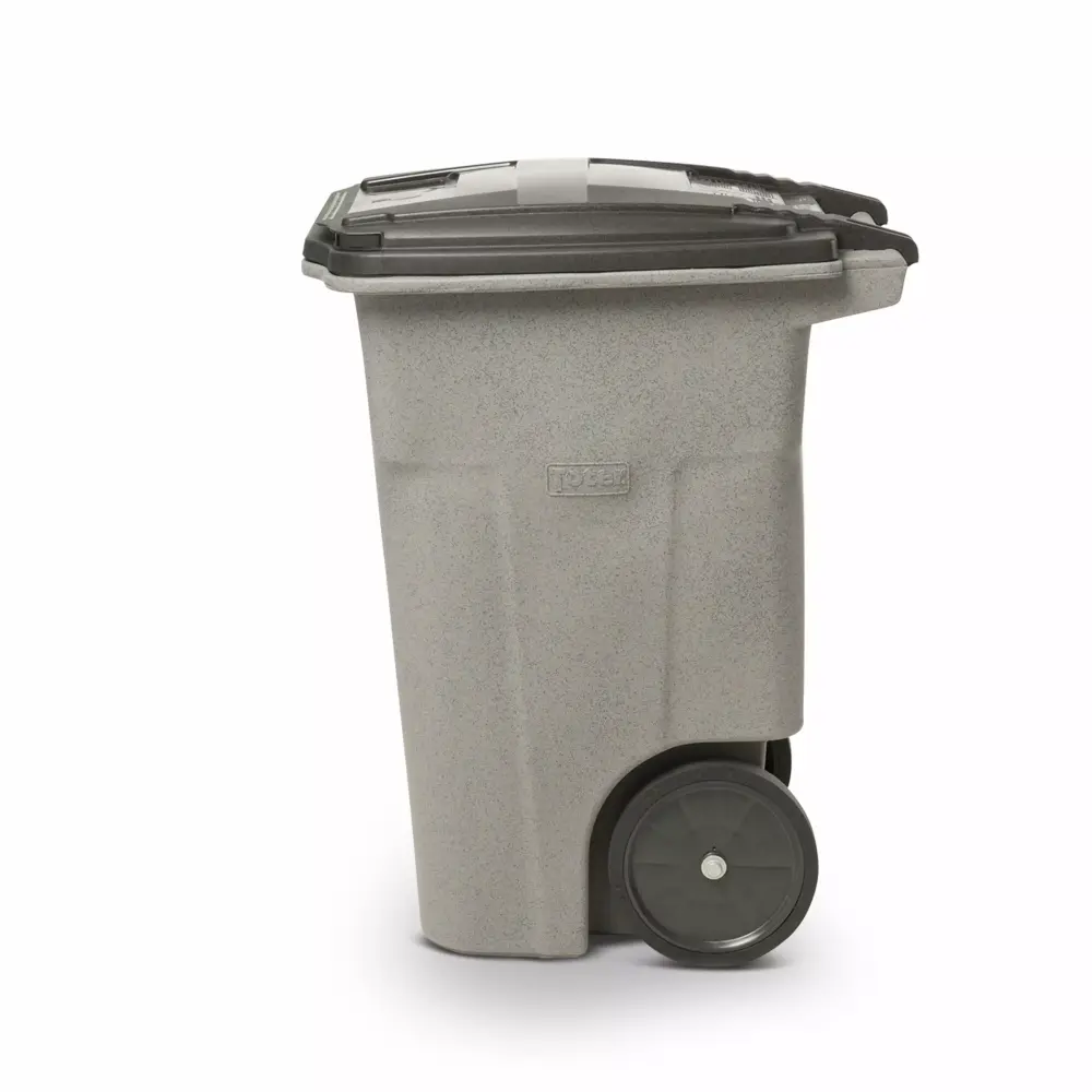 - Toter trash cans feature quiet-cap wheels to reduce noise when moving cans