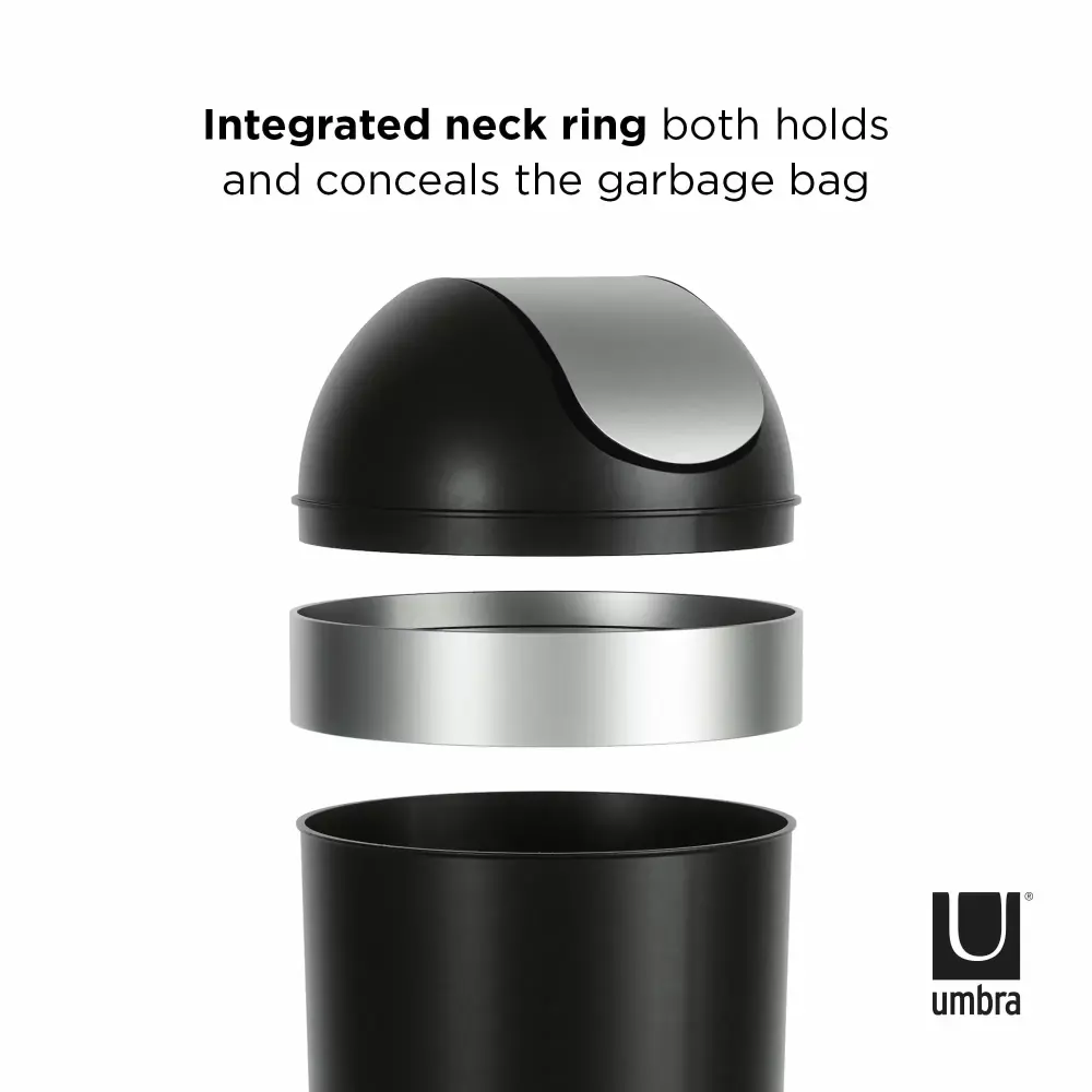 - SIMPLE CLEAN DESIGN: Venti’s swing-top lid keeps garbage out of sight while the neck ring both holds and conceals the bag for a clean. modern look