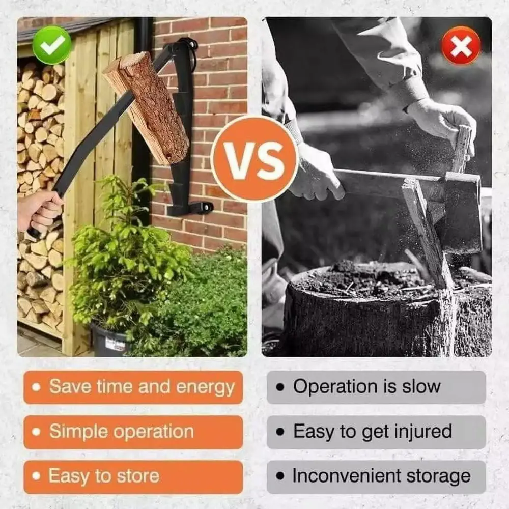 - Efficient Lever Mechanism: No need for additional tools like axes.Simply lift the blade.place the wood beneath.and apply pressure to split.