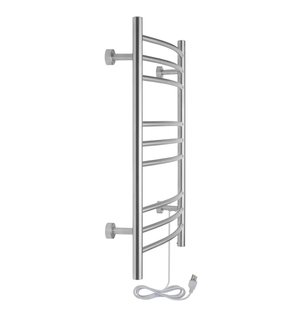 Treat yourself to the ultimate spa experience. With a WarmlyYours Riviera Towel Warmer, you can wrap yourself in the luxuriant warmth of a soft, heated towel after every shower. With a beautiful, brushed or polished stainless steel finish, the Riviera features nine elegantly, curved bars to provide ample space for warming two towels or a bathrobe. Wall-mounted, the Riviera operates at 120V and produces 150 watts. In addition to the built-in on/off switch, this model can also be paired with a programmable timer (sold separately) enabling you to handily preset it to your schedule to ensure snug, fluffy towels are ready and waiting for you. Dimensions: 24”W x 32”H x 5”D. Stay warm and cozy with our collection of wall-hung towel warmers.
