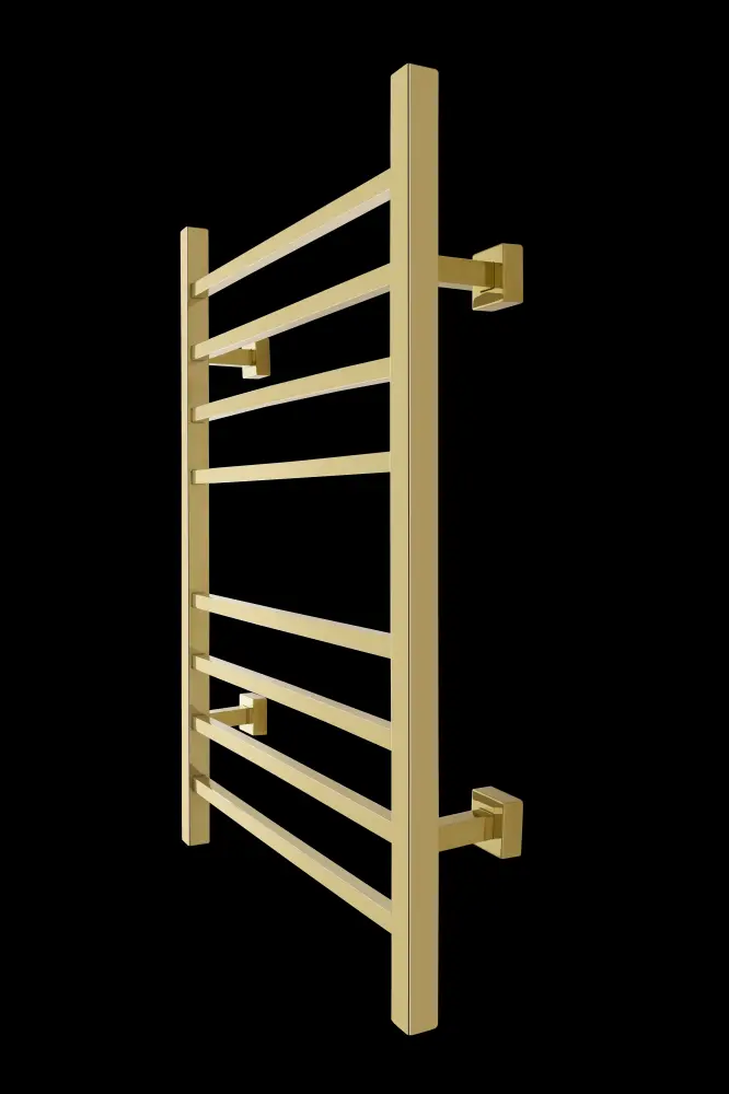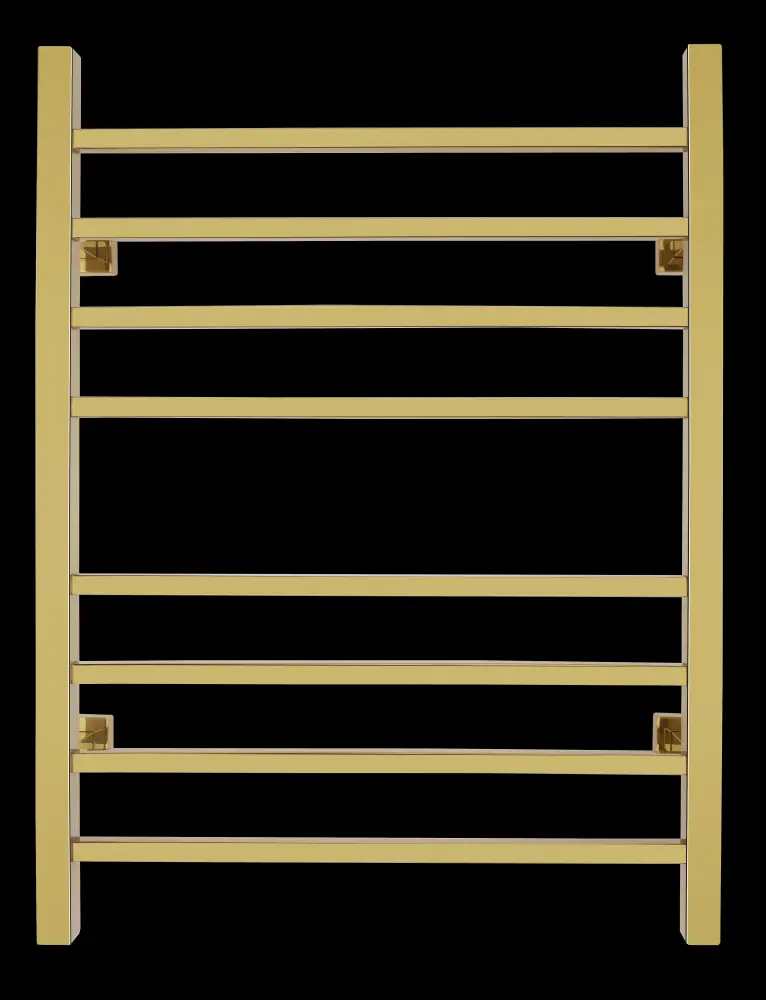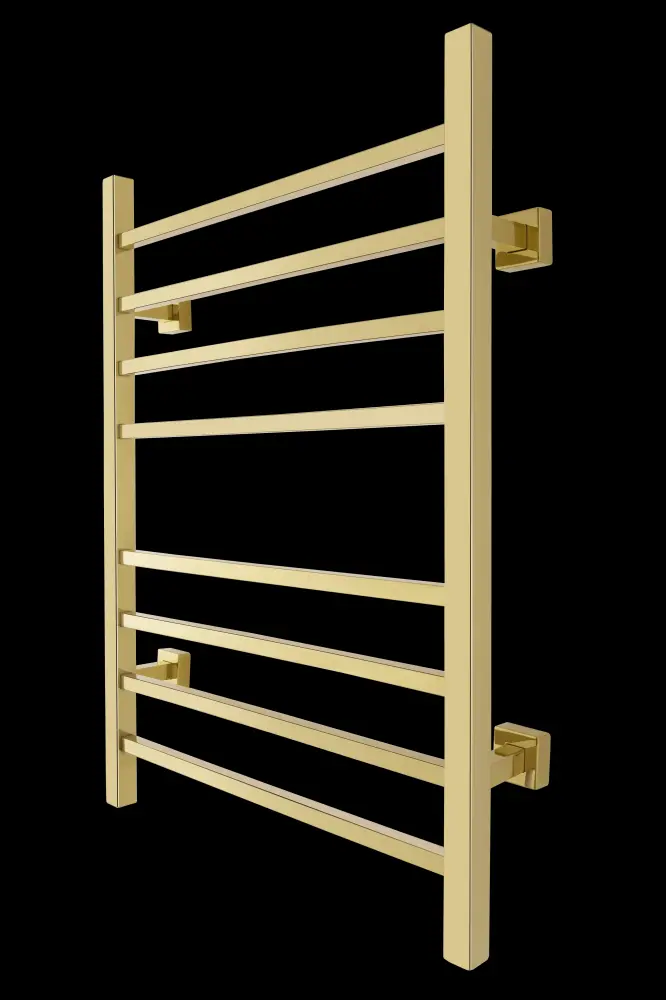 A towel warmer is more than just a simple appliance—it’s an instant upgrade to your morning routine! When a warm towel is waiting for you after your shower or bath, it makes it that much easier to start your day off right. The Sierra towel warmer provides this added touch of luxury while also presenting itself as a stylish design element in any room. With a modern, geometric look and glossy gold finish, this model becomes a focal point in any room. The Sierra’s eight square bars perfectly accommodate two bath towels or a bathrobe to help keep them warm or dry between uses.This towel warmer is also twin connection which means that it can be used “as is” to plug into a standard 120 VAC outlet or it can be modified by a licensed electrician to have a hardwired 120 VAC electrical connection. When this towel warmer is installed with a hardwired electrical connection, there is no unattractive and cumbersome cover plate required because of its unique design. The Sierra is safe and i