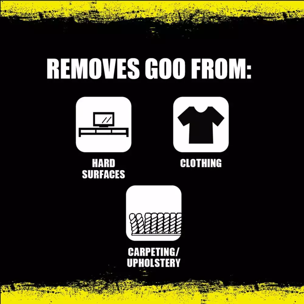 Goo Gone. 32 Oz.Citrus Powered Solution. For Tough Cleaning Problems. Dissolves Difficult Messes Like Tar. Adhesives. Chewing Gun. Shoe Polish. Crayon. Grease. Make Up Stains. Labels. Masking Tape Residue. Price Stickers & Bumper Stickers. Goo Gone. 32 oz. Citrus Powered Solution. Price Stickers & Bumper Stickers.Others