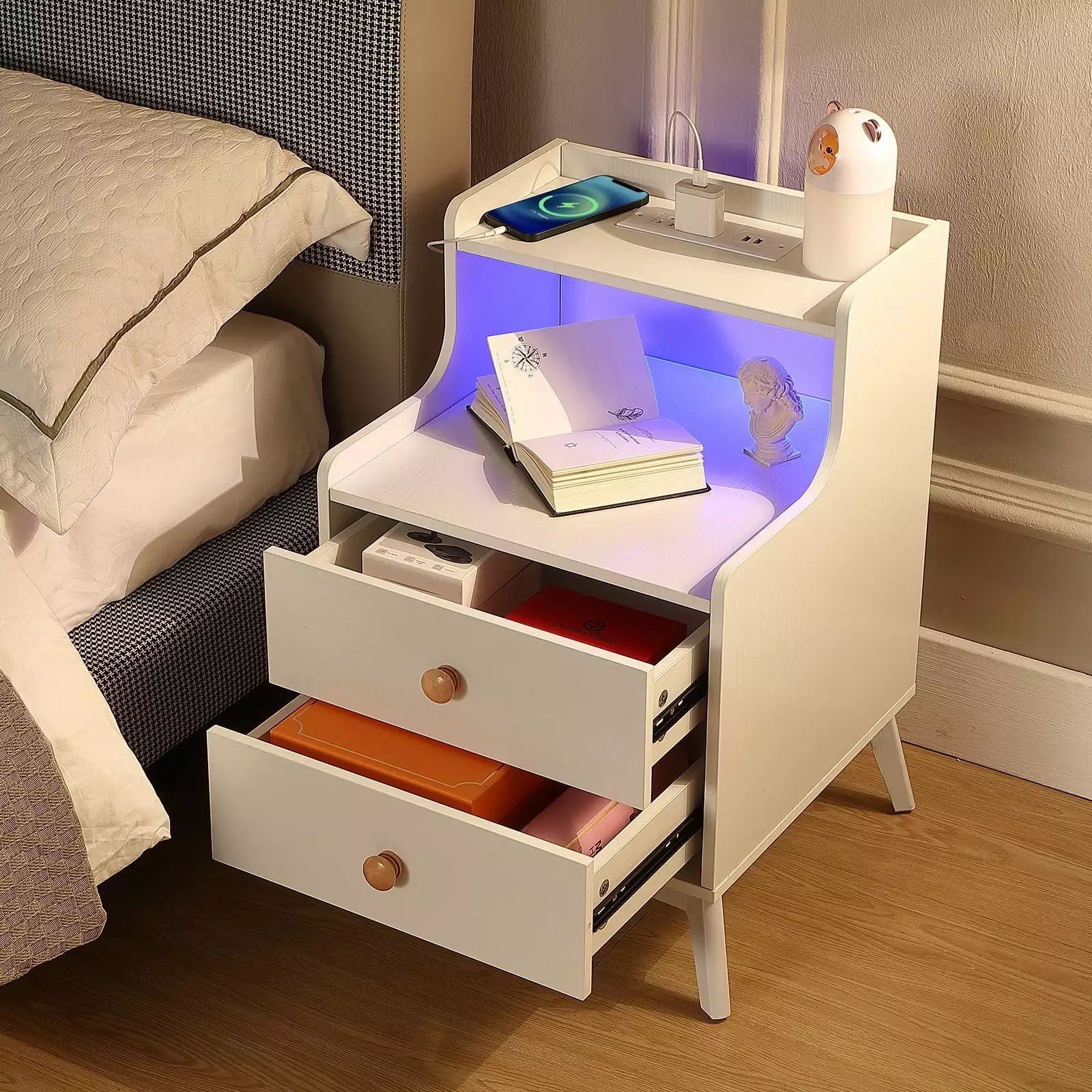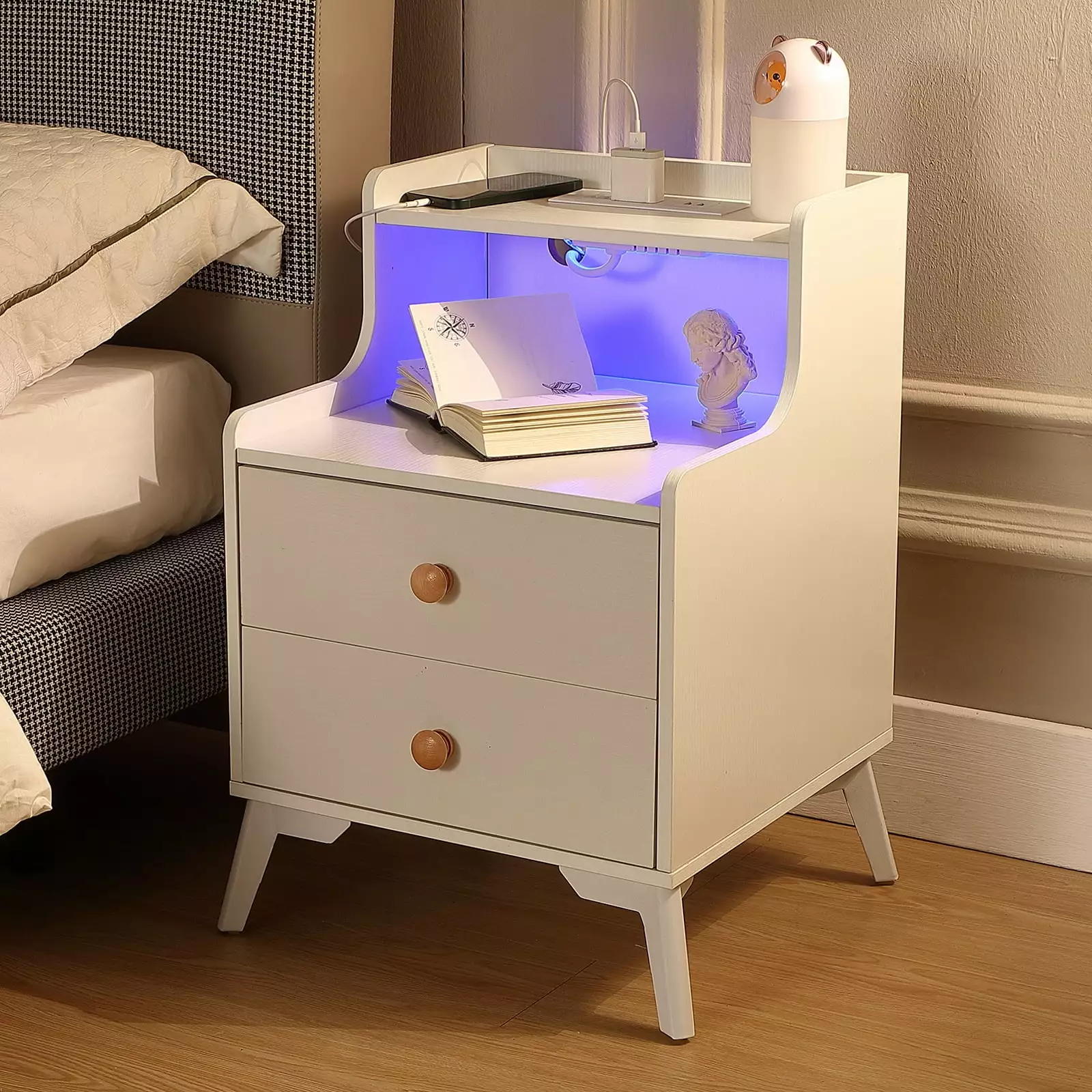 Modern and functional design nightstand for bedroom. functional sofa side table. end table for living room. and alos could be used as storage cabinet for office. Specially add high quality LED light strips. so you may enjoy the atmosphere light while listening to music or drinking coffee.
