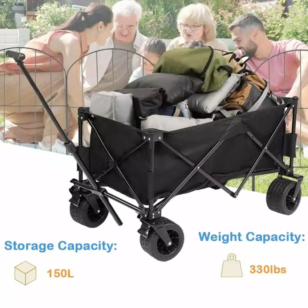 - WIDELY USED: Our large capacity wagon can help you simplify the transport of heavy loads through lightly pulling. It is suitable for family outings. gardening. outdoor concerts and movies. and sporting events or anywhere you want. And you are handy for lugging a load of groceries home from the store. hauling equipment to playing fields.