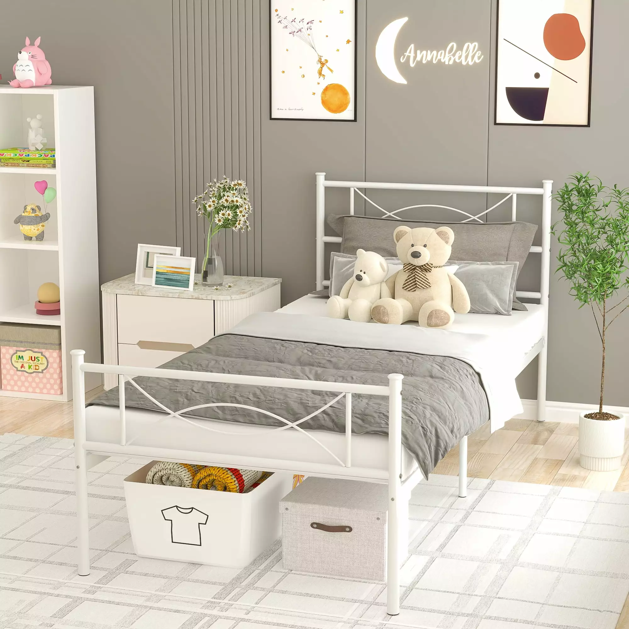- Sturdily constructed. the bed frame includes metal slats and supporting legs for added support